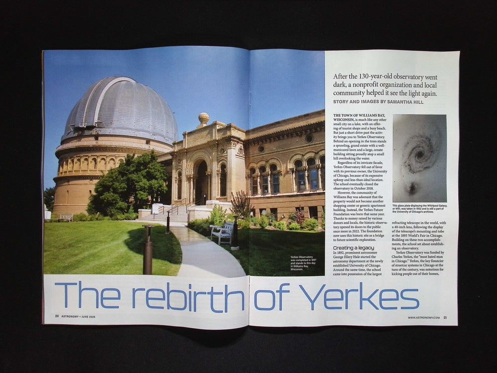 《Astronomy》2025年6月號探索克卜勒的夢想與首部月球天文學論文,穿越天文學史的重要時刻。專題報導包括耶基斯天文台的重生、月球運動解析、極光攝影師的心聲與完整的天象觀測指南。