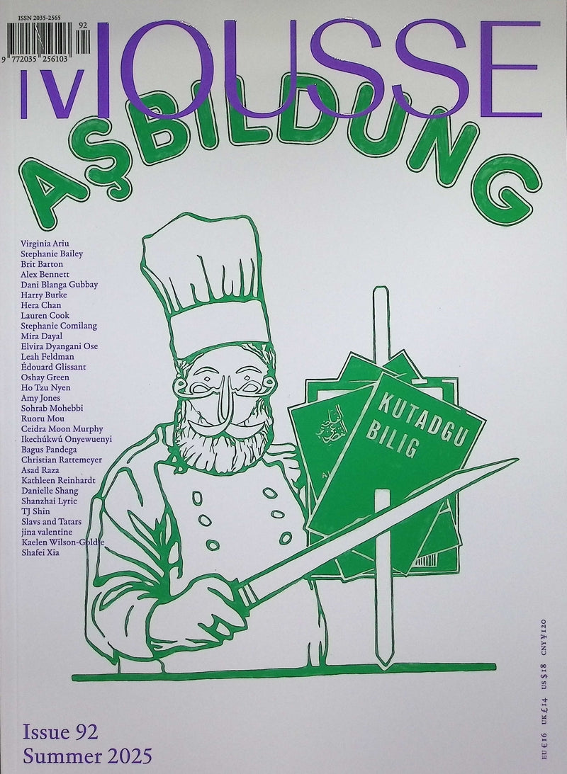 《Mousse》N92 Summer 2025以“AŞBILDUNG”為題,探索文化、藝術與教育的交錯影響,封面以幽默插畫廚師形象結合知識與創作的象徵,呼應多元觀點。內頁收錄Virginia Attri、Stephanie Bailey、Bisi Silva等跨國藝術家與評論,涵蓋繪畫、攝影、裝置與文本創作,呈現從細膩手稿到當代裝置的多層次美學。透過跨界合作與批評性思考,展現全球藝術生態的互動與延展,並以獨特編排突顯視覺敘事的張力與趣味。