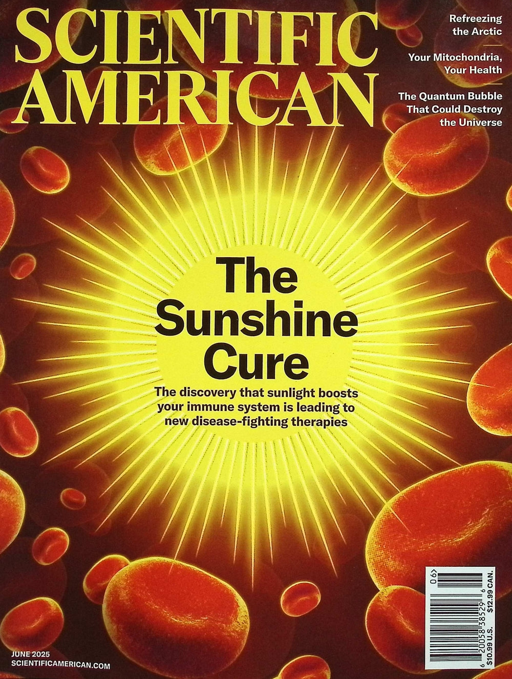 《Scientific American》2025年6月號以「陽光療法」為主題,深入探討陽光對人體免疫與疾病治療潛力的最新研究。專題涵蓋人類持續演化的基因證據、宇宙量子泡沫對宇宙存續的威脅、以及早期宇宙「宇宙黎明」階段的觀測突破。融合生物學、物理學與天文學前沿成果,展現科學與自然運作的深層機制,激發對生命與宇宙的理解與想像。